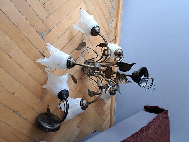 Sprzedam metalową lampę sufitową, na cztery żarówki + metalowy kinkiet na jedną żarówkę. Komplet bez żarówek. Stan ...