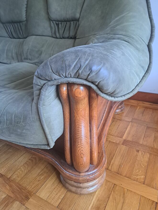 Polecam kanapę kolor oliwka 3+2+1 stelaż dąb. Zapraszam do obejrzenia i zakupu więcej info pod nr tel 691 - pokaż numer telefonu -Żaneta