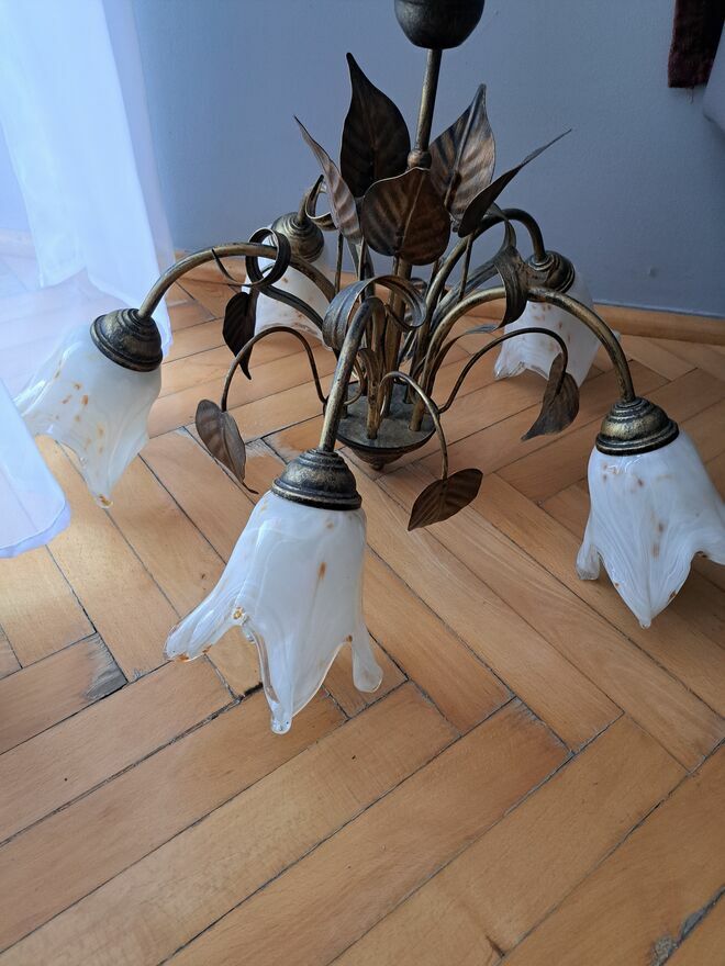 Witam posiadam na sprzedaż zyrandol oraz kinkiet, kolor kloszy biel oraz złoto z czarnym.Zapraszam do obejrzenia i zakupu.Sprawdź zainteresowanie tym ogłoszeniem